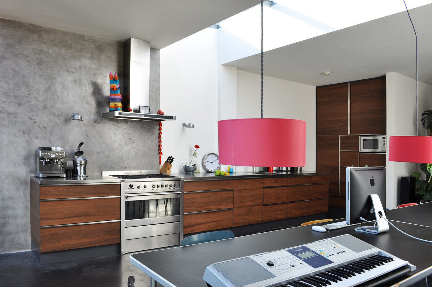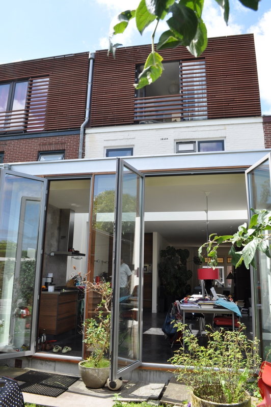 Renovation for two family house (1930). The houses are expended vertically with an additional floor realised simultanesly. The floor plan propose 2 extra bedrooms for each extra levels. The wooden lamels gives a warm aspect to the extension, matching to the red brick patterns usully seen in this neiboorhood. The groundfloor is extended within the garden providing exceptional light to the large kitchen and dinning area.